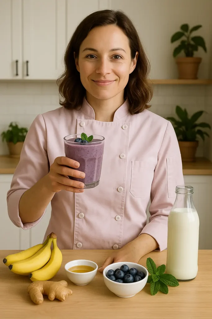 A smoothie that’s not just tasty but also supports your gut health? Yes, please! This Blueberry Ginger Kefir Smoothie is creamy, sweet, slightly spicy, and packed with probiotics, fiber, and nutrients. With powerful ingredients like kefir, ginger, and blueberries, it helps your gut thrive with every sip. In my cozy kitchen, soft morning light streamed through the window as I blended fresh blueberries, spicy ginger, and creamy kefir. The scent filled the room, bright, earthy, and comforting. That first sip was everything: smooth, tangy, and nourishing. It felt like a warm, healthy, delicious hug from within.